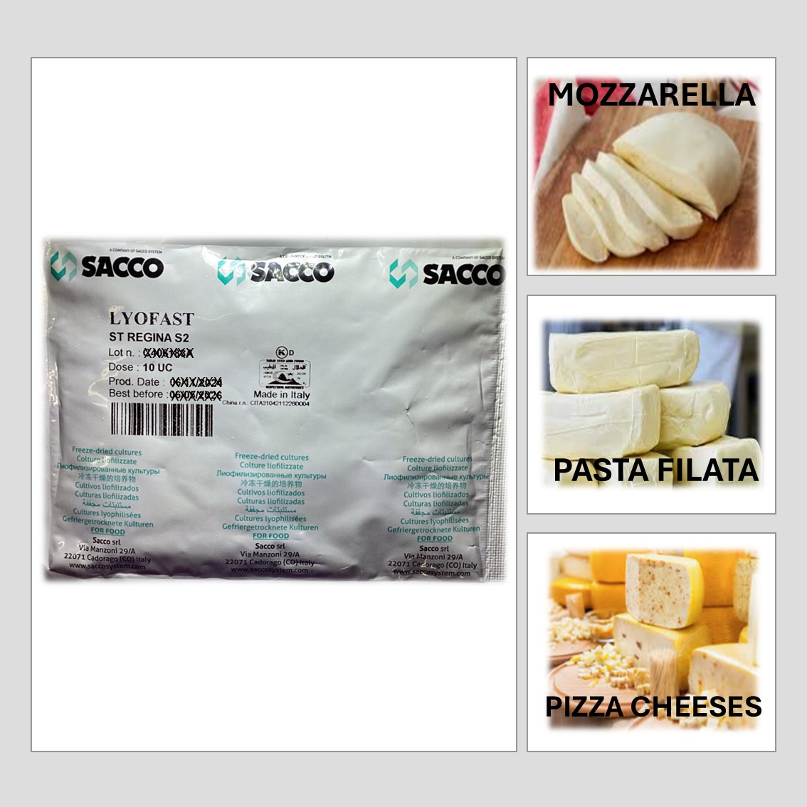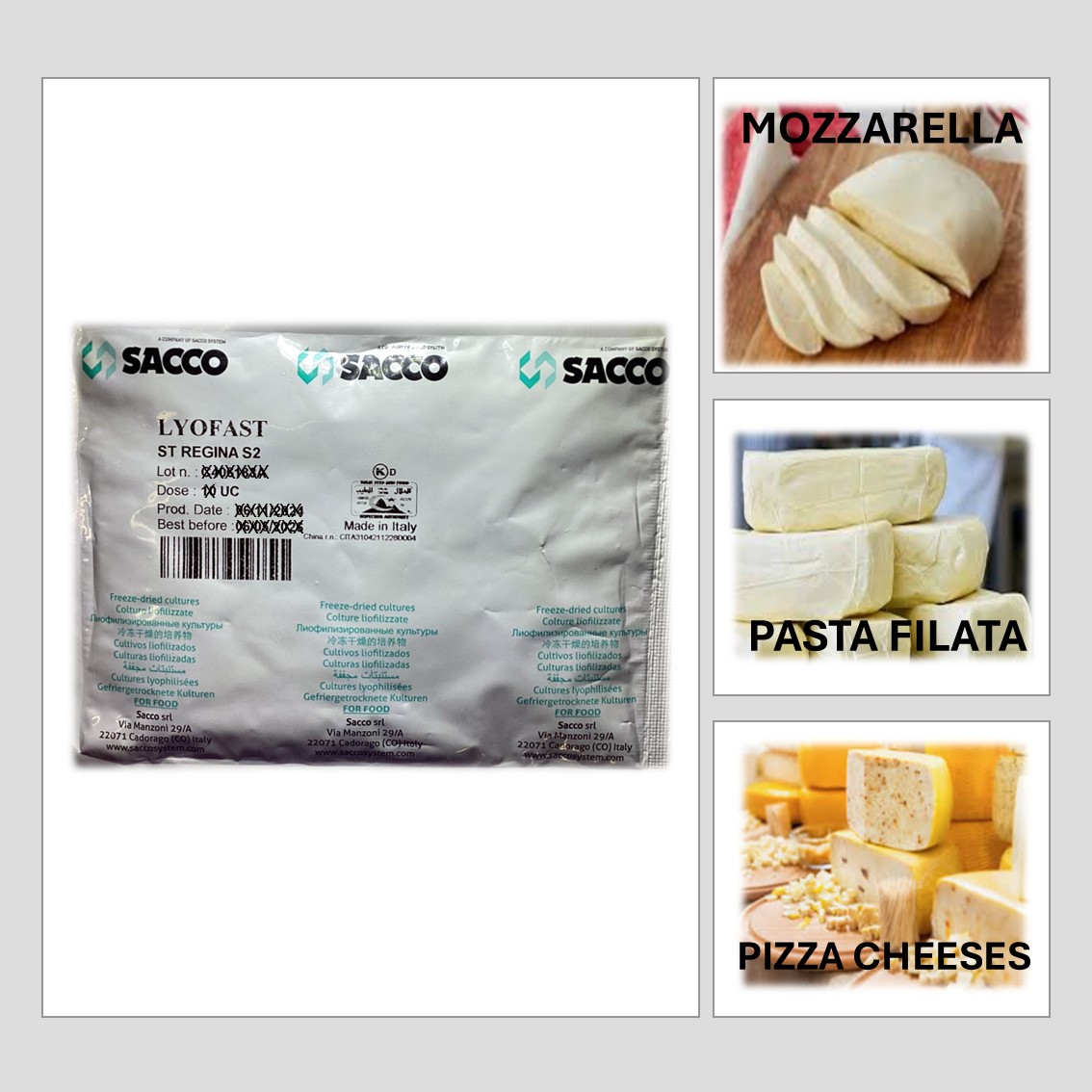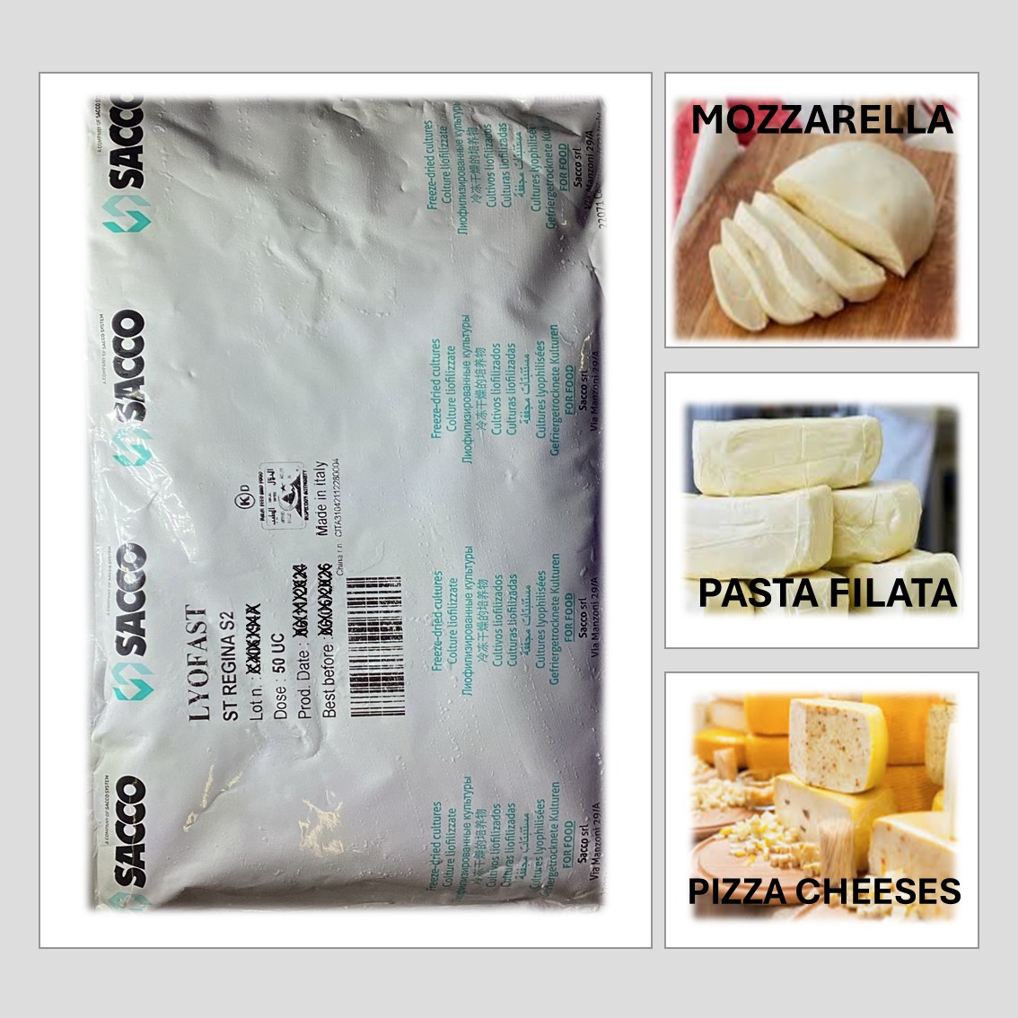 ST REGINA S2 ENSURES A UNIFORM AND CONTROLLED PRODUCTION OF PASTA FILATA CHEESE (LIKE MOZZARELLA, PIZZA CHEESE, FIORDILATTE, PROVOLA, PROVOLONE, CACIOCAVALLO). ALSO ENSURES AN EXTRA FERMENTATION SPEED TO GIVE A LOW POST ACIDIFICATION AND GUARANTEE STANDARDISATION OF PRODUCTION TIME IMPROVING STRETCHABILITY OF CHEESE. PERFECT THIN SLICES. BETTER TASTE AND LONGER SHELF LIFE. PERFECT BROWNING APPEARANCE WITHOUT OVER-BROWNING.
