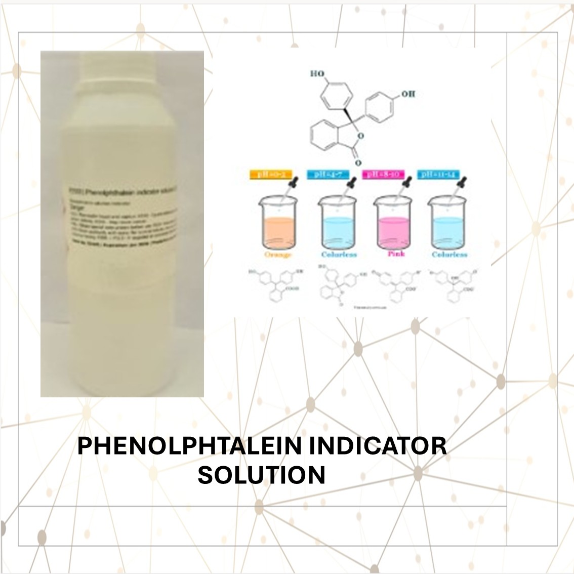 COMMONLY USED IN TITRATIONS TO DETERMINE THE ENDPOINT OF A REACTION BY INDICATING ACIDITY OR BASICITY. TRANSITION RANGE IS PH 8.2 TO 10 - SUITABLE FOR TITRATIONS INVOLVING STRONG BASES AND WEAK ACIDS.