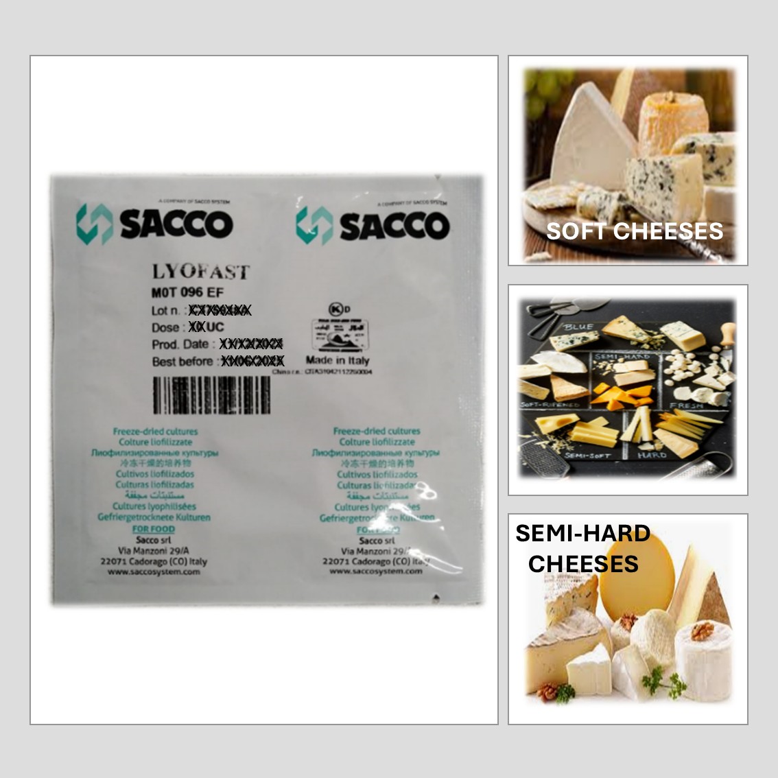 LYOFAST MOT 096 EF CONSISTS OF SPECIFICALLY SELECTED STRAINS OF LACTOCOCCUS LACTIS SSP LACTIS, LACTOCOCCUS LACTIS SSP. CREMORIS, STREPTOCOCCUS THERMOPHILUS, LACTOBACILLUS HELVETICUS, AND LACTOBACILLUS DELBRUECKII SSP. BULGARICUS. THIS CULTURE CAN BE USED TO PRODUCE FETA, CHEDDAR, GOUDA, CAMEMBERT, BRIE, ROQUEFORT, COTTAGE CHEESE, AND CREAM CHEESE. A VERY GOOD ALL-ROUNDER CULTURE THAT CONTAINS A PERFECT COMBINATION OF STRAINS. THE CULTURE ENSURES A UNIFORM AND CONTROLLED PRODUCTION OF SOFT CHEESE, SEMI-HARD CHEESE, AND HARD CHEESE.