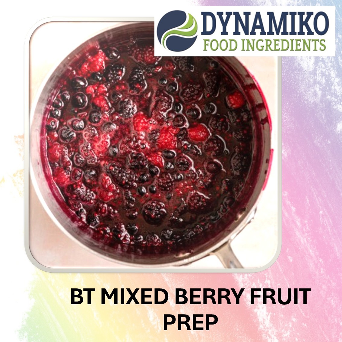 A SEMI-THICK, VISCOUS / FREE-FLOWING PURPLE MIXED BERRY FRUIT SYRUP BASE CONTAINING MIXED BERRIES FRUIT PIECES. HEAT TREATED AND PACKED.