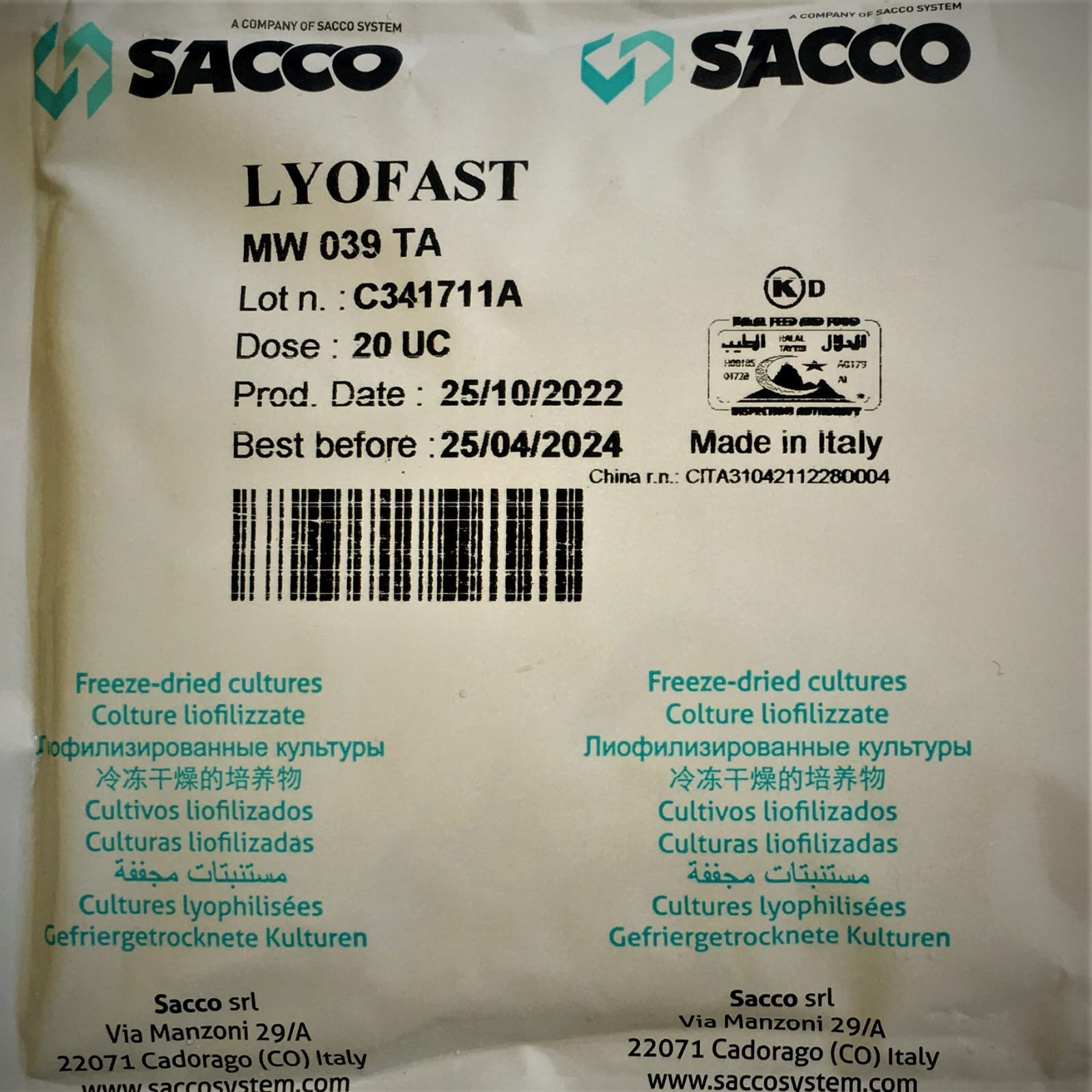 LYOFAST MW 039 TA IS A FREEZE-DRIED STARTER CULTURE.