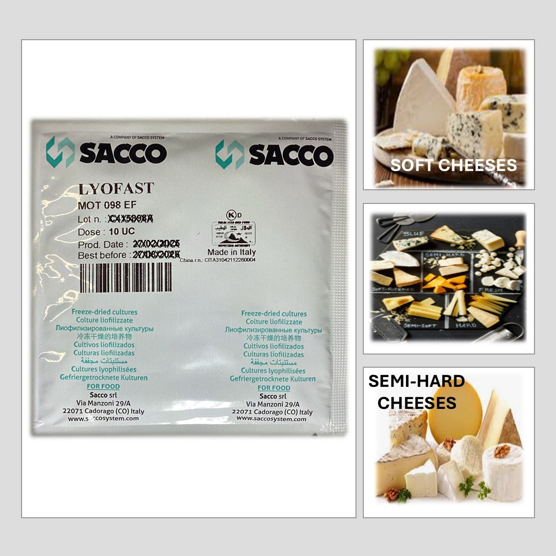 LYOFAST MOT 098 EF CULTURES ENSURES A UNIFORM AND CONTROLLED PRODUCTION OF SOFT CHEESE AND SEMI-HARD CHEESE