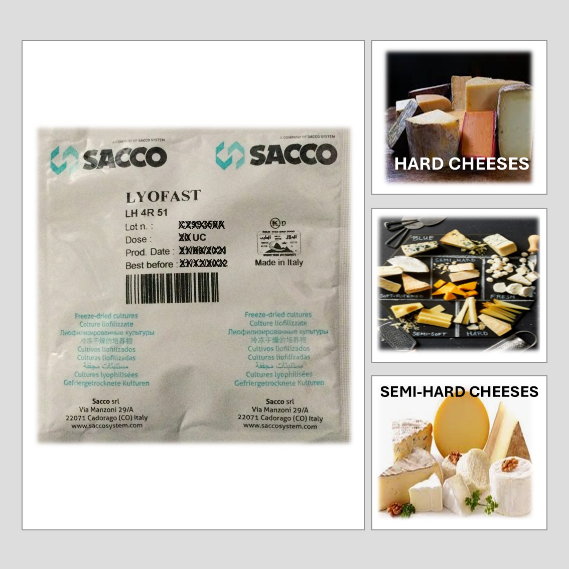 LYOFAST LH 4R 51 CONSISTS OF A SPECIFICALLY SELECTED STRAIN OF LACTOBACILLUS HELVETICUS. THIS CULTURES ENSURES A UNIFORM AND CONTROLLED PRODUCTION OF HARD AND SEMI-HARD CHEESE, WITH ENHANCED FLAVOUR DUE TO HIGH PROTEINASE AND PEPTIDASE ACTIVITY, IN COMBINATION WITH OTHER LAB STARTER CULTURE E.G. STREPTOCOCCUS THERMOPHILUS.