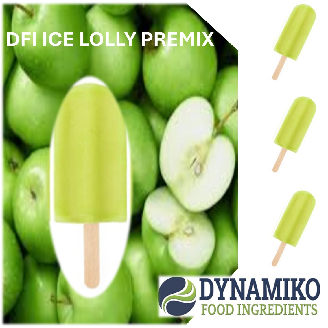 FREE-FLOWING POWDER PREMIX FOR USE IN THE PRODUCTION OF APPLE FLAVOURED ICE LOLLIES.