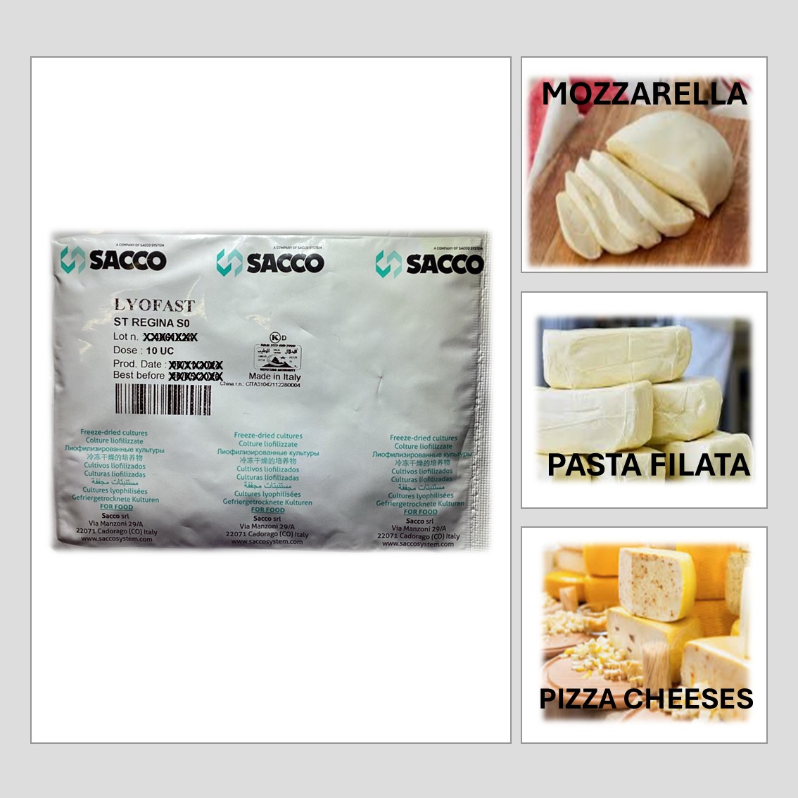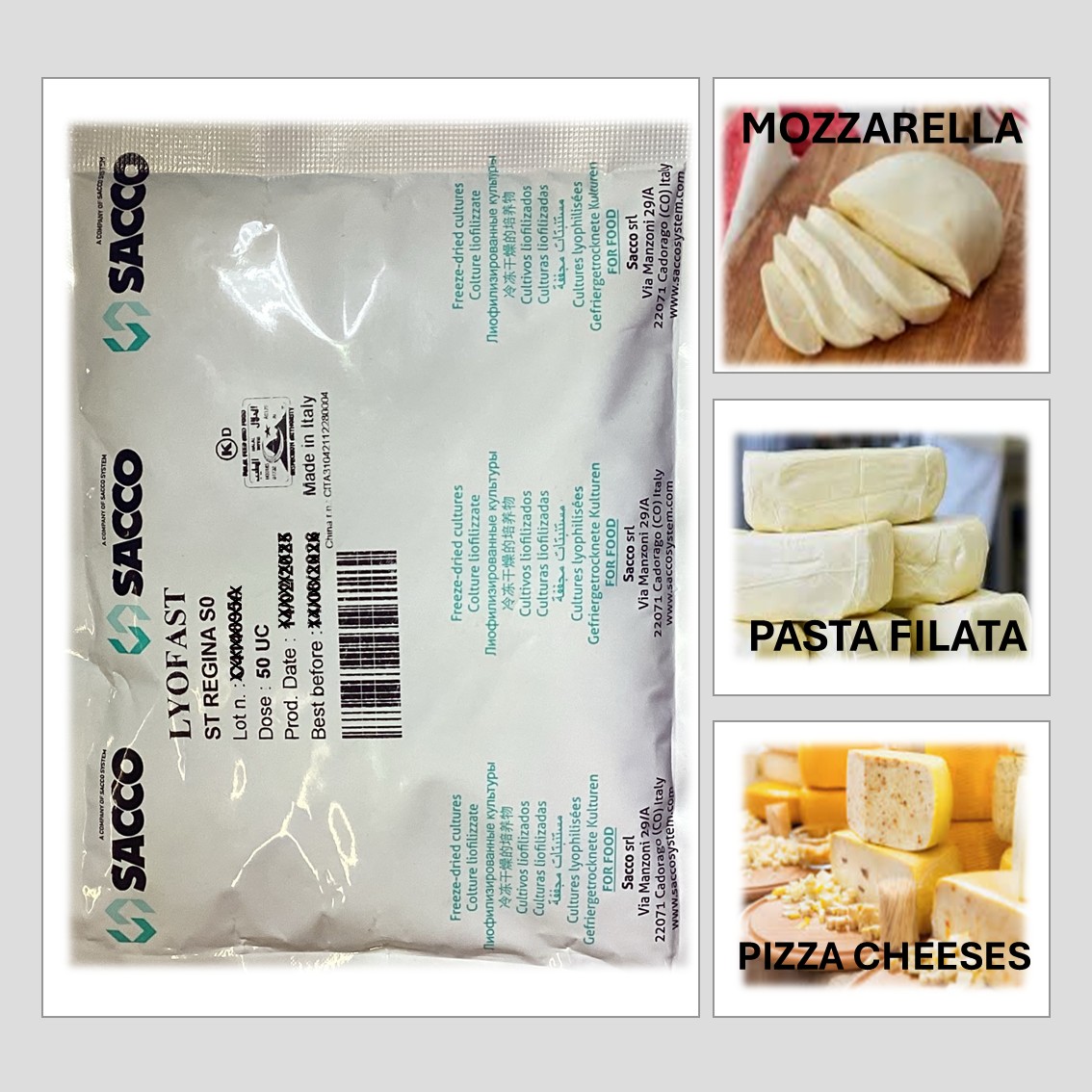 ST REGINA S0 ENSURES A UNIFORM AND CONTROLLED PRODUCTION OF PASTA FILATA CHEESE (LIKE MOZZARELLA, PIZZA CHEESE, FIORDILATTE, PROVOLA, PROVOLONE, CACIOCAVALLO). ALSO ENSURES AN EXTRA FERMENTATION SPEED TO GIVE A LOW POST ACIDIFICATION AND GUARANTEE STANDARDISATION OF PRODUCTION TIME IMPROVING STRETCHABILITY OF CHEESE. PERFECT THIN SLICES. BETTER TASTE AND LONGER SHELF-LIFE. PERFECT BROWNING APPEARANCE WITHOUT OVER-BROWNING.