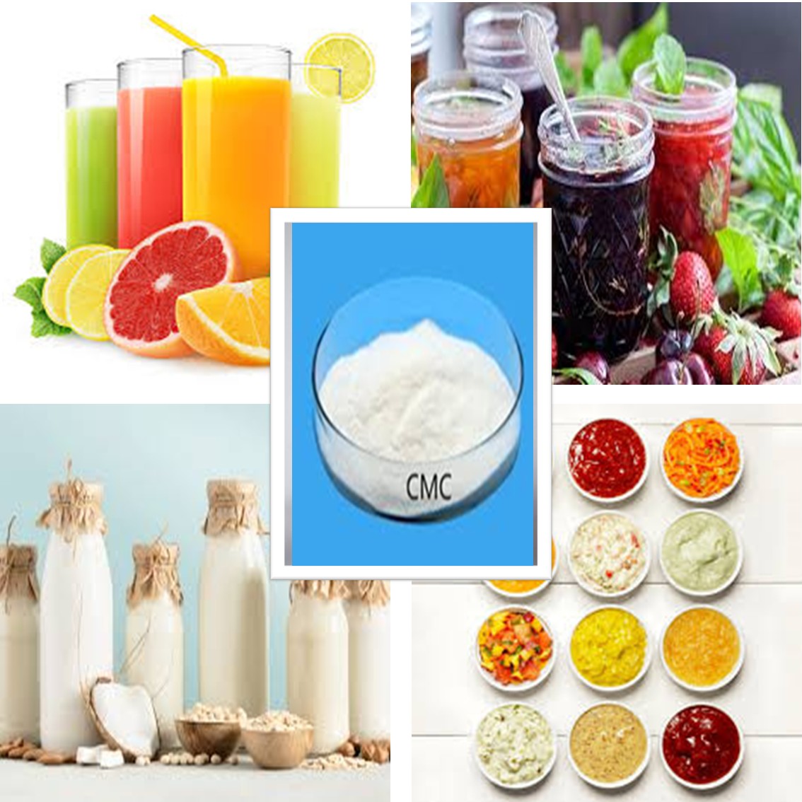 CMC HAS THE FUNCTIONS OF THICKENING, EMULSIFYING, STABILIZING, SHAPING, BULKING, RETAINING FRESHNESS AND ACID-RESISTING. IT CAN REPLACE THE APPLICATION OF GUAR GUM, GELATIN, AGAR, SODIUM ALGINATE AND PECTIN. IT IS WIDELY USED IN THE FOOD INDUSTRY, SUCH AS FROZEN FOOD, FRUIT JUICE, JAM, LACTIC ACID DRINKS, CONDIMENTS, BISCUITS, INSTANT NOODLES, BAKERY PRODUCTS, MEAT PRODUCTS, ETC. IT HAS HIGH VISCOSITY EVEN IN LOW CONCENTRATION. IT CAN REDUCE THE SYNERESIS OF FOOD AND EXTEND THE SHELF LIFE. IT CAN CONTROL THE CRYSTAL SIZE IN FROZEN FOOD. IN AN ACID SYSTEM, IT CAN IMPROVE THE STABILITY OF MILK. OUR CMC CAN BE USED TOGETHER WITH OTHER STABILIZERS AND EMULSIFIERS TO COMPLEMENT EACH OTHER, STRENGTHEN EACH OTHER’S EFFECT AND REDUCE THE COST.