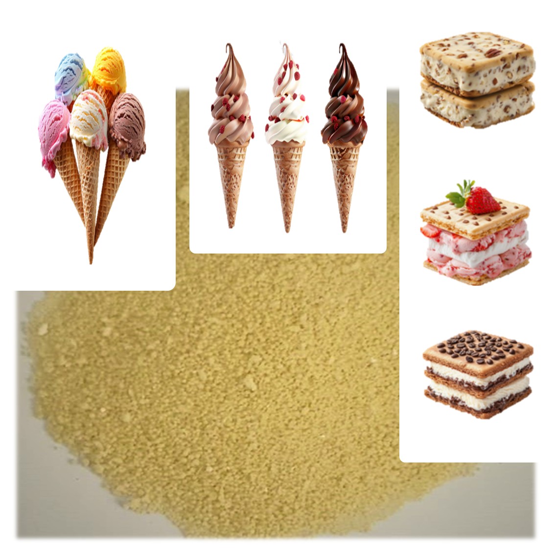 THIS IS A BLEND OF VEGETALBE-BASED EMULSIFIERS AND STABILISER WITH A YELLOW-WHITE BEAD APPEARANCE. USED IN PRODUCTION OF SOFT SERVE, FROZEN DESSERT, HIGHER FAT AND HARD ICE CREAM. THIS EMULSIFIER IS AN INTEGRATED BLEND WHICH ALLOWS FOR THE BAG TO BE USED IN SMALLER AMOUNTS WITHOUT ANY CONCERNS OF SETTLING OUT OF THE CONTENTS. IMPARTS EXCELLENT CREAMY MOUTHFEEL, FINE AND SMOOTH TEXTURE, CLEAN AND WARM EATING PROPERTIES AND MELTING RESISTANCE. PROVIDES DRY EXTRUSION, EXCELLENT HEAT SHOCK RESISTANCE AND PREVENTS SHRINKAGE. CREATES GOOD BODY AND CONSISTENCY.