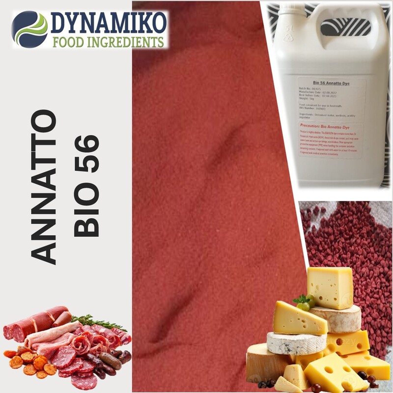 ANNATTO BIO 56 (A DARK BROWN LIQUID) IS AN AQUEOUS POTASSIUM HYDROXIDE SOLUTION OF THE COLOURING PIGMENT EXTRACT FROM ANNATTO SEEDS. USED IN THE DAIRY, FISH, MEAT AND BAKERY INDUSTRIES AND A VARIETY OF OTHER FOOD PRODUCTS LIKE ICE CREAM, SUGAR, CONFECTIONARY, CEREALS, SNACK FOODS, ETC. FOOD COLOURING OR COLOUR ADDITIVE, IS ANY DYE, PIGMENT OR SUBSTANCE THAT IMPARTS COLOUR WHEN ADDED TO FOOD OR DRINK. IN VARIOUS FORMS SUCH AS LIQUIDS, POWDERS, GELS AND PASTES. FOOD COLOURING IS USED IN BOTH COMMERCIAL FOOD PRODUCTION AND HOME COOKING. FOOD COLOURING ARE ALSO UTILIZED IN A VARIETY OF NON-FOOD APPLICATIONS, INCLUDING COSMETICS, PHARMACEUTICALS, HOME CRAFT PROJECTS AND MEDICAL DEVICES.