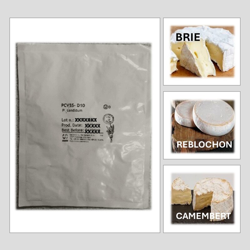 PCV5-S CONSIST OF A SPECIFICALLY SELECTED STRAIN OF PENICILLIUM CAMEMBERTI TO ENSURE A UNIFORMM AND CONTROLLED SURFACE TREATMENT IN THE PRODUCTION OF MOULDED CHEESE.
