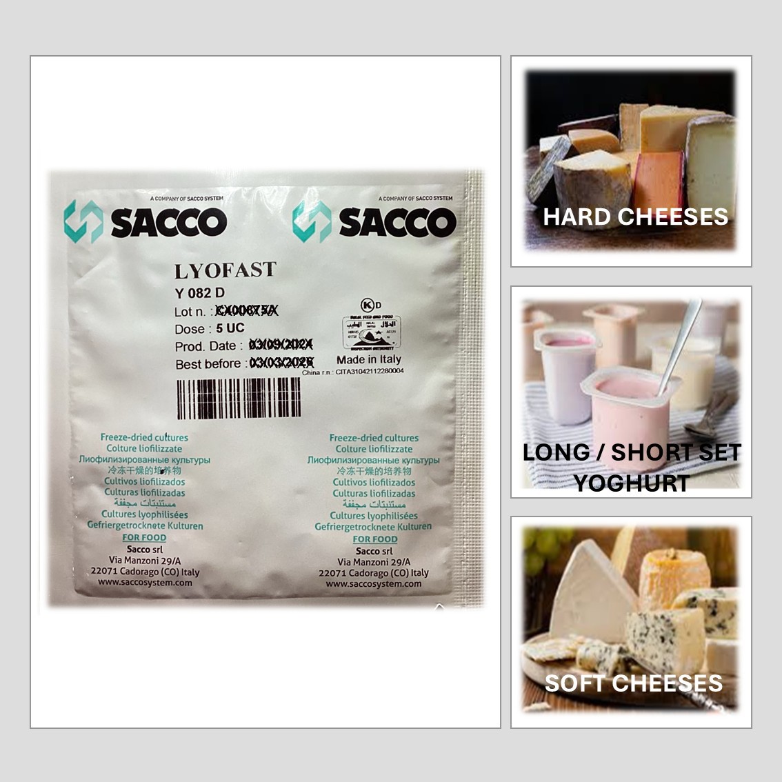 LYOFAST Y 082 D CONSIST OF SPECIFICALLY SELECTED STRAINS OF STREPTOCOCCUS THERMOPHILUS AND LACTOBACILLUS DELBRUECKII SSP. BULGARICUS WITH NO EPS PRODUCTION. THIS CULTURE ENSURES A UNIFORM AND CONTROLLED PRODUCTION OF TRADITIONALLY TASTING, AROMATIC YOGHURT WITH FAST AND STRONG ACIDIFICATION. MAINLY USED FOR THE PRODUCTION OF SET YOGHURT AND DRINKING YOGHURT. MIGHT ALSO BE USED TO PRODUCE FRESH CHEESE, SOFT CHEESE, AND HARD CHEESE.