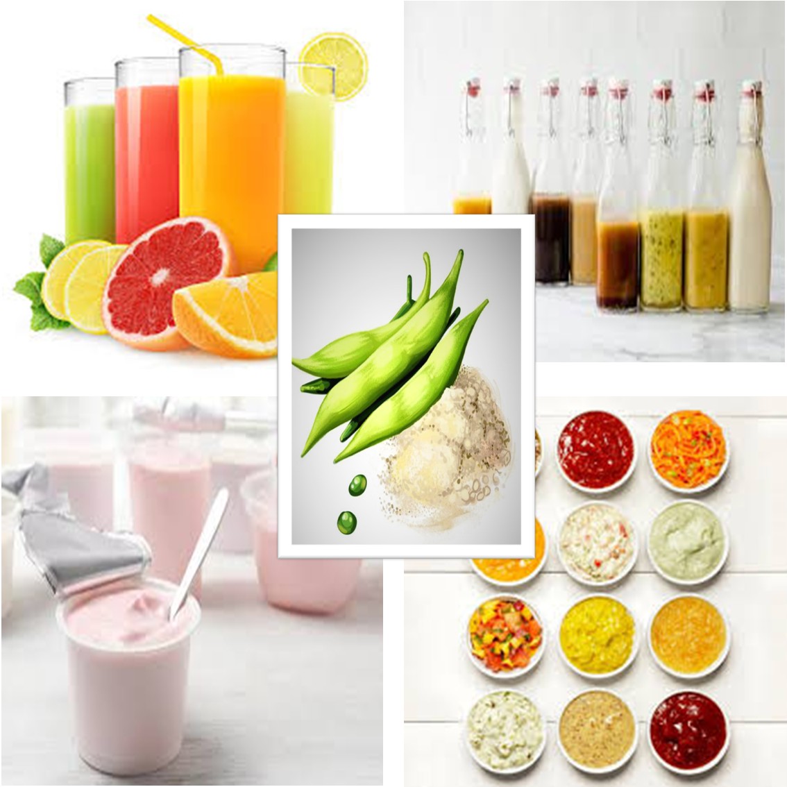 IT IS COMMONLY USED AS A THICKENING, EMULSIFYING, BINDING, AND STABILIZING AGENT IN FOOD PRODUCTS. GUAR GUM IS KNOWN FOR ITS HIGH VISCOUSITY AND ABILITY TO FORM STRONG FILMS AND GELS, MAKING IT VALUABLE IN A VARIETY OF APPLICATIONS SUCH AS BAKING, DAIRY PRODUCTS, SAUCES, DRESSINGS, AND BEVERAGES.